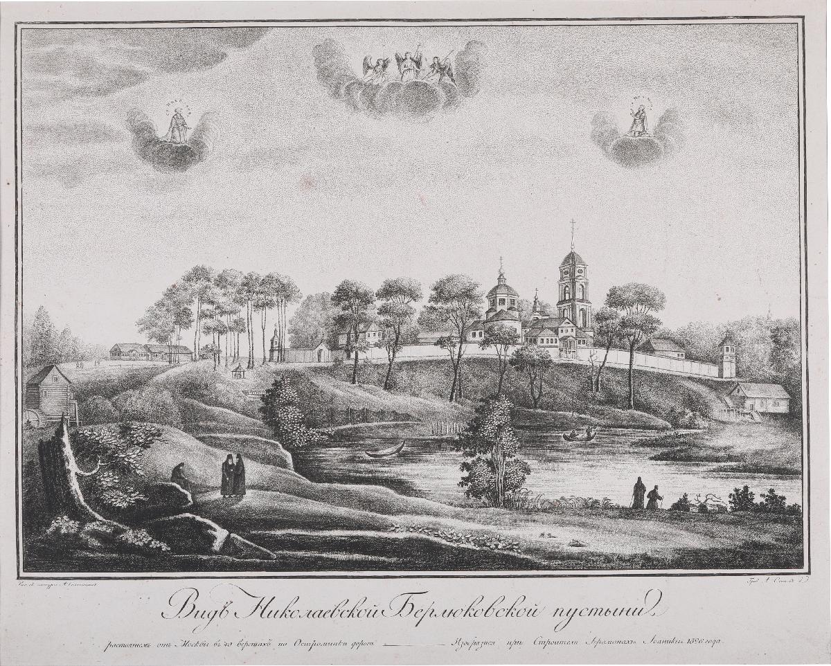 Вид Николаевской Берлюковской пустыни. Гравюра.