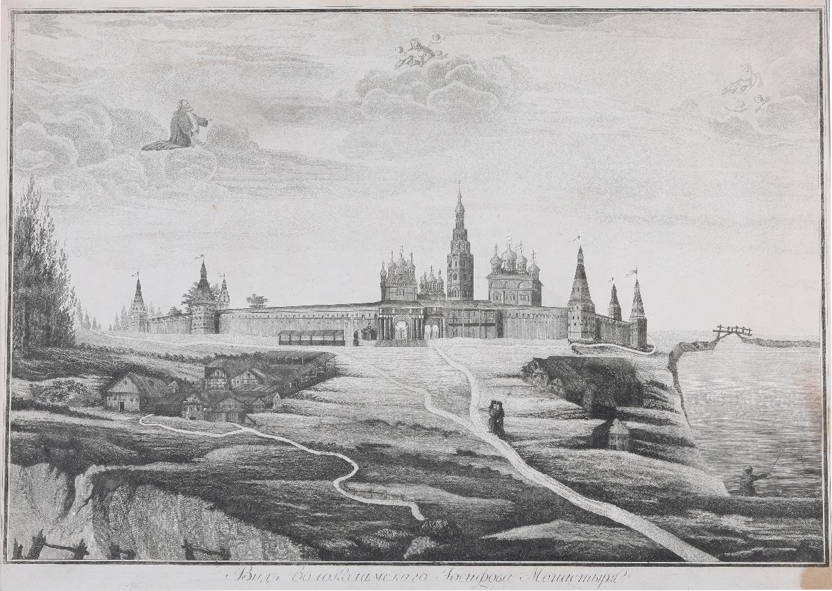 Вид Свято-Успенского Иосифо-Волоцкого монастыря. Гравюра.