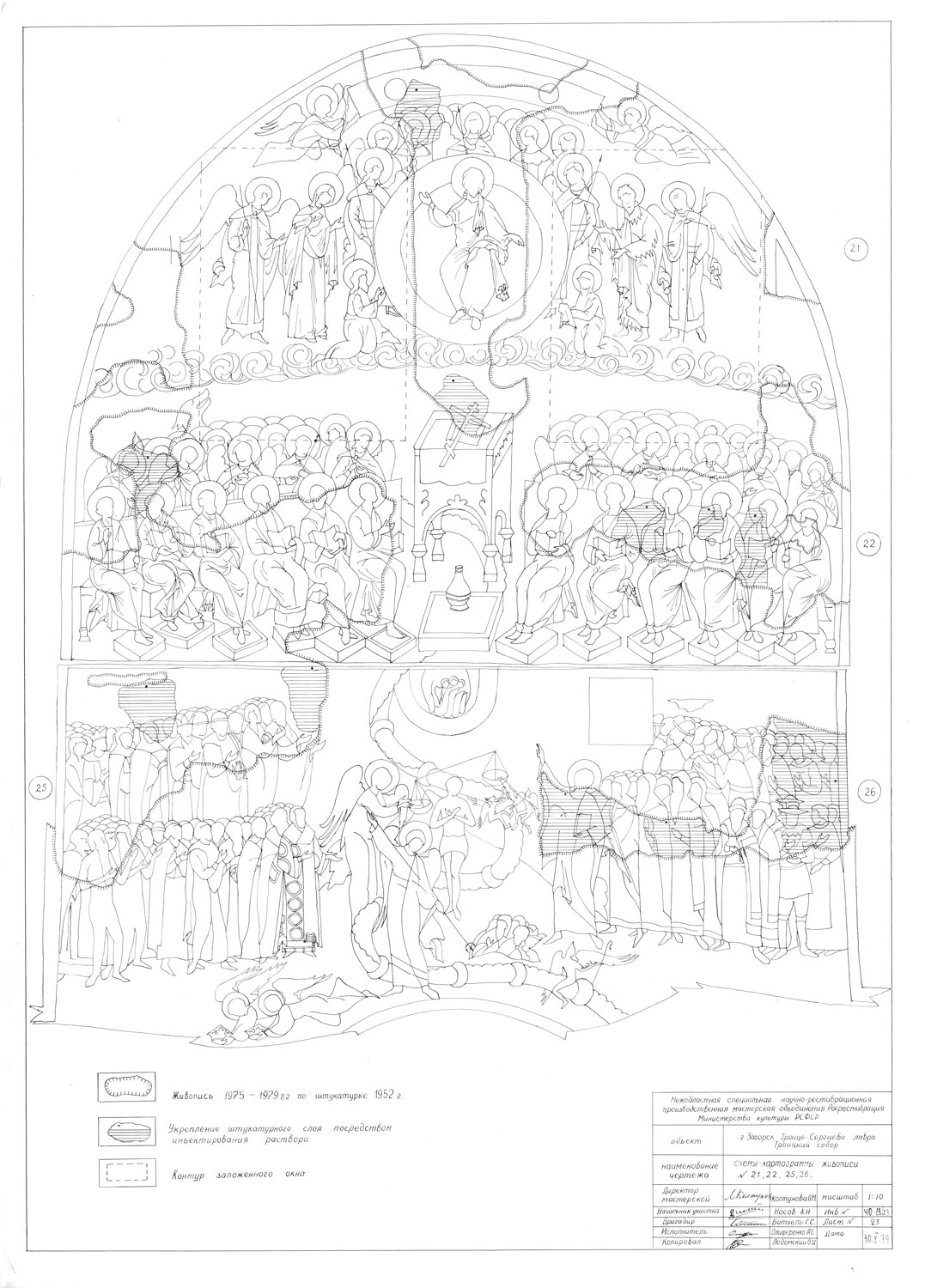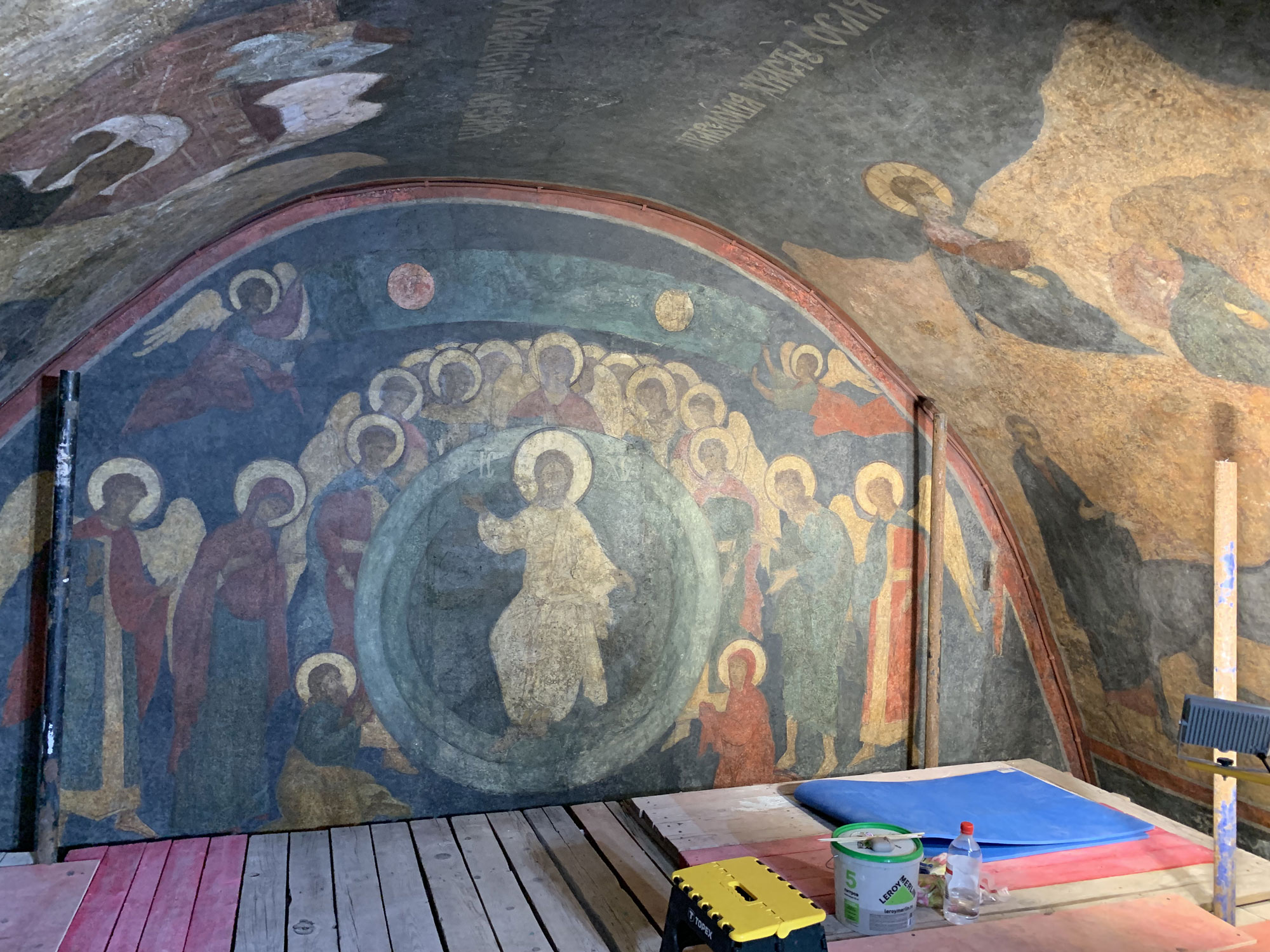 Христос во Славе, фрагмент фрески «Страшный суд» во время реставрации Троицкого собора