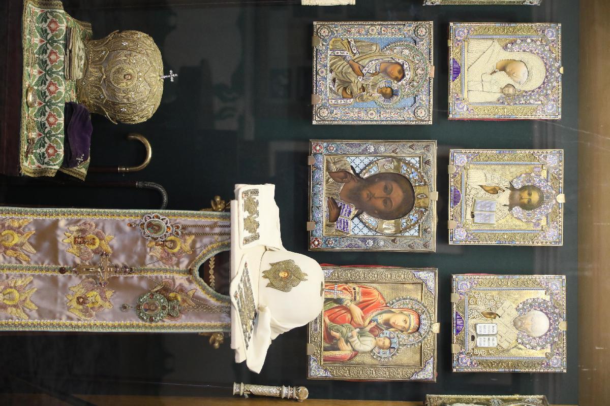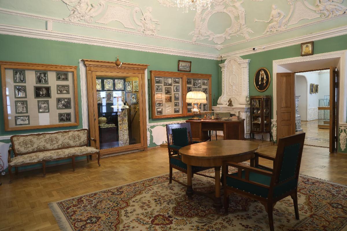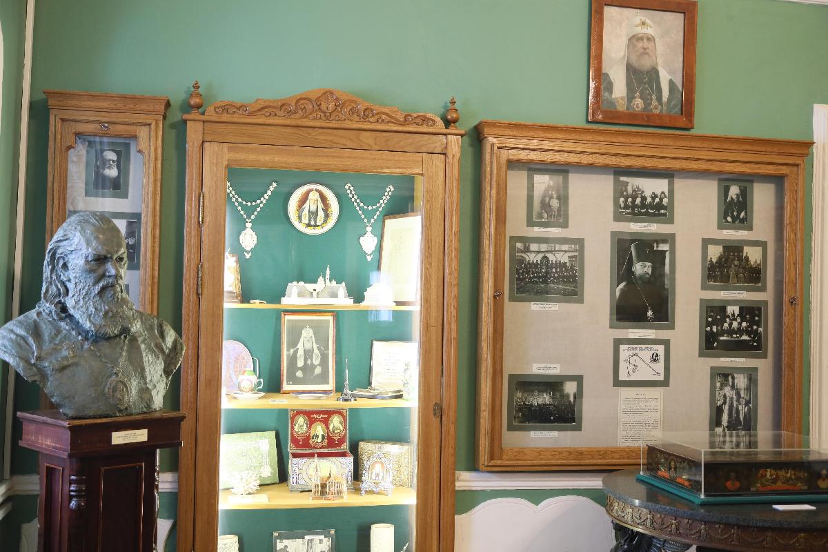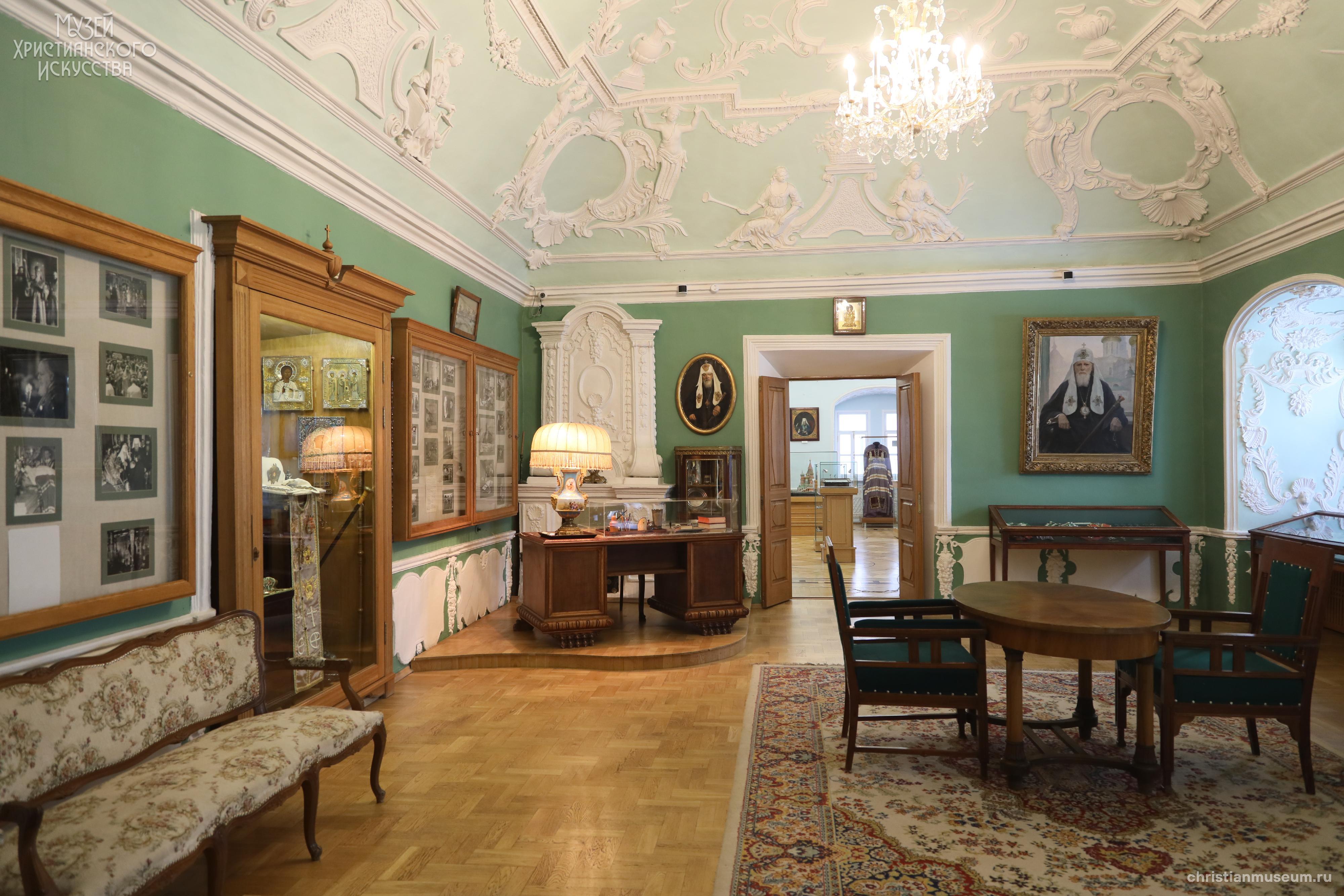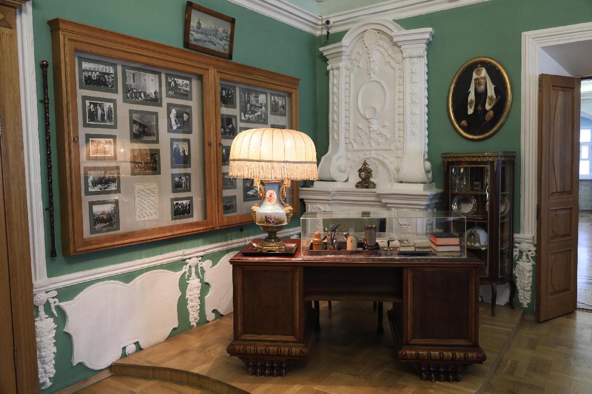 Мемориальный кабинет был открыт в память о Святейшем патриархе Алексие I после его кончины в 1970 году. Здесь находится мебель, переданная из митрополичьих покоев Троице-Сергиевой Лавры, настольные принадлежности, личные вещи патриарха. В экспозиции собраны подарки, подносимые при паломничествах по Святой Земле и Ближнему Востоку, панагии, облачения и награды. Среди экспонатов особый интерес вызывает недописанная проповедь, которую патриарх готовил для произнесения на Пасху 1970 года. Ознакомиться подробнее с этой рукописью можно в разделе «Реликвии».
