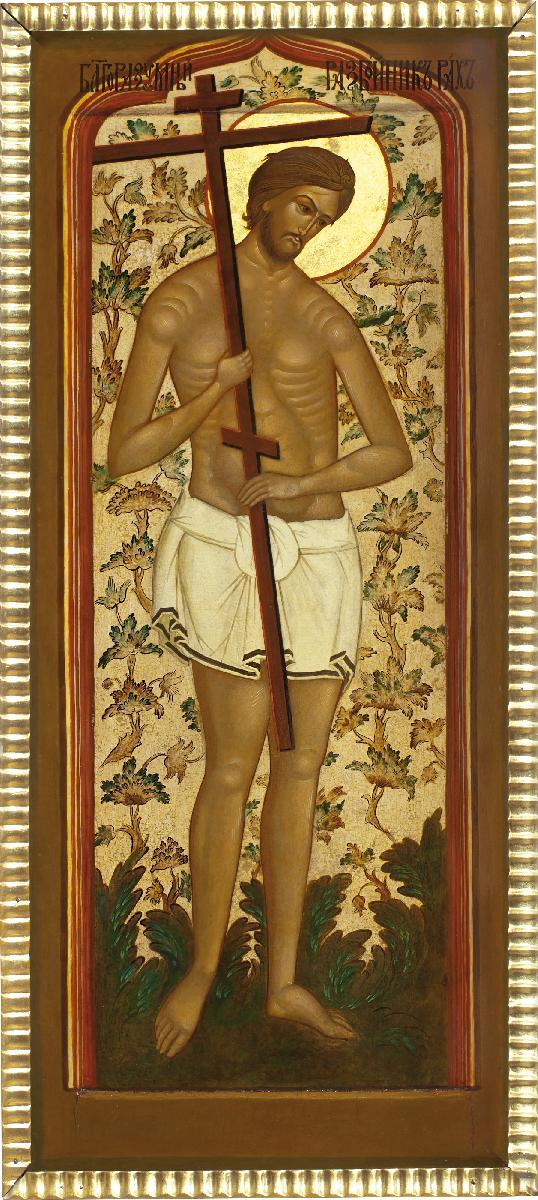 Икона была написана для восполнения недостающих образов иконостаса XVII века, который поступил в академический Покровский храм в 1955 году. Это одна из икон авторства монахини Иулиании (Соколовой) для местного ряда. Первоначально иконостас церкви преподобного Харитона Исповедника состоял из пяти рядов: местного, деисусного, праздничного, пророческого и праотеческого. От огромного комплекса уцелело около половины икон (церковь прп. Харитона Исповедника в Огородниках была разрушена в 1935 году). В Покровской академической церкви сохранившиеся иконы размещены в трех ярусах за счет объединения деисусных, пророческих и праотеческих икон в один верхний ряд. Праздничный и местный ряды дополнены иконами авторства монахини Иулиании (Соколовой).