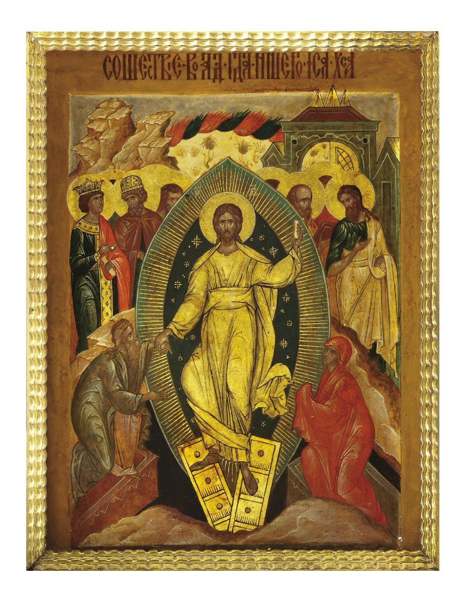 Икона была написана для восполнения недостающих образов иконостаса XVII века, который поступил в академический Покровский храм в 1955 году. Это одна из восьми икон авторства монахини Иулиании (Соколовой) для праздничного ряда. Первоначально иконостас церкви преподобного Харитона Исповедника: состоял из пяти рядов: местного, деисусного, праздничного, пророческого и праотеческого. От огромного комплекса уцелело около половины икон (церковь прп. Харитона Исповедника в Огородниках была разрушена в 1935 году). В Покровской академической церкви сохранившиеся иконы размещены в трех ярусах за счет объединения деисусных, пророческих и праотеческих икон в один верхний ряд. Праздничный и местный ряды дополнены иконами авторства монахини Иулиании (Соколовой).