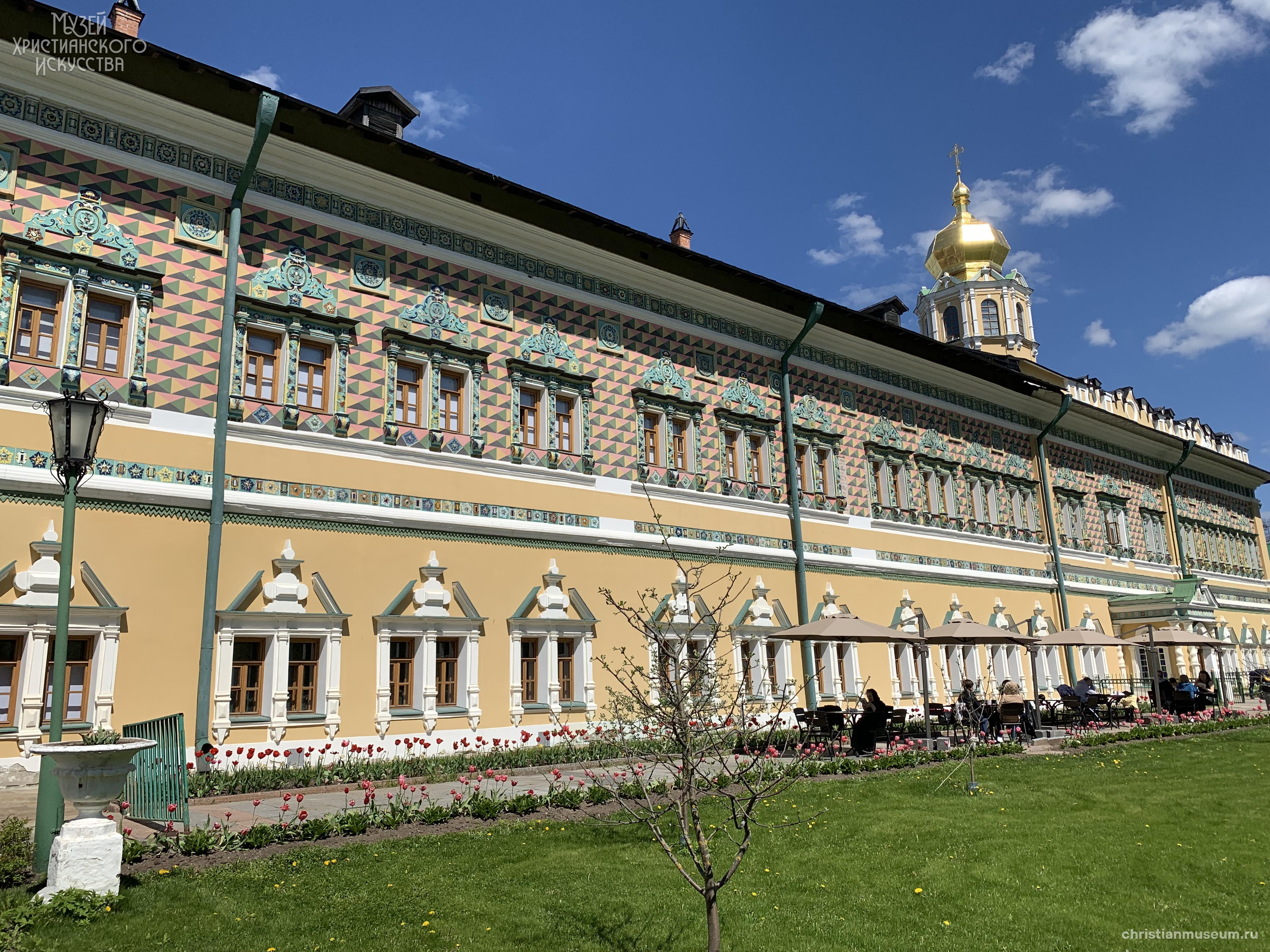 В 1814 году в «Чертогах» разместилась Московская духовная академия. Дворец получил более скромный облик: был перестроен фасад, разобрана наружная галерея и парадные лестницы. Цветистые фасады закрашены светло-желтой краской. В 1869 году часть палат была переделана под академическую церковь Покрова Пресвятой Богородицы. В 1949 году были восстановлены белокаменные обрамления окон первого этажа, частично междуэтажная тяга из профилированных поясов, в 1957 – раскраска фасадов «в шахмат».