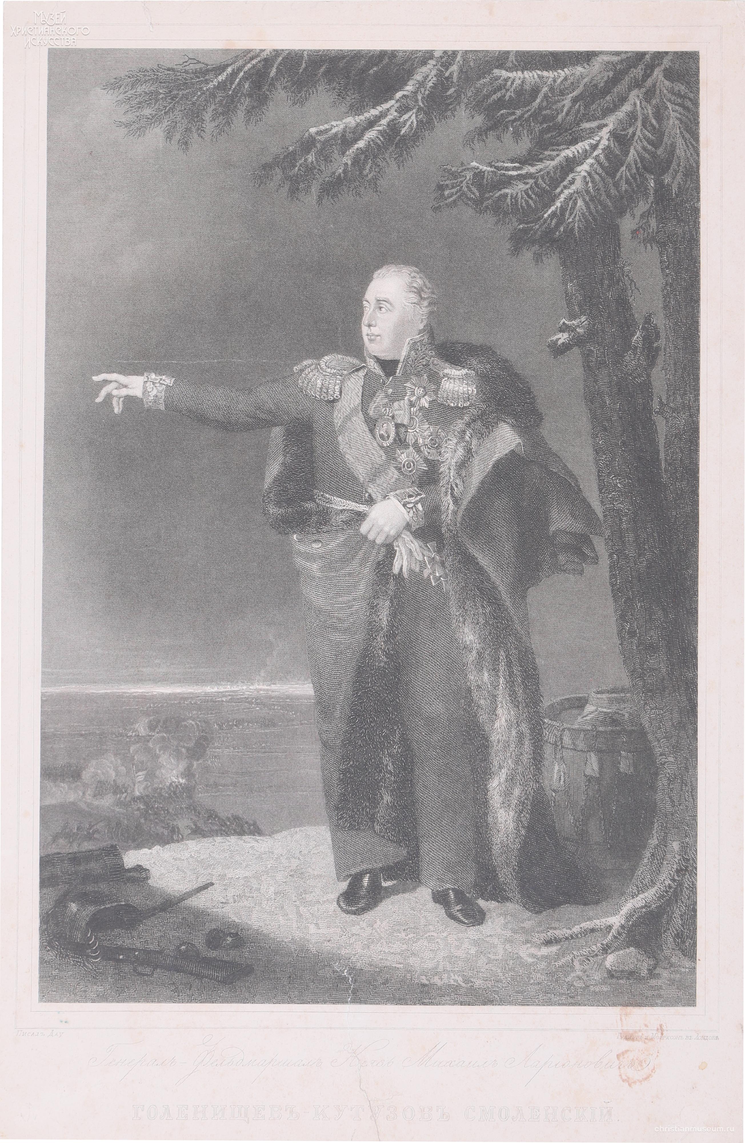 Надпись под изображением - «Генералъ-Фельдмаршалъ Князь Михаилъ Ларионовичъ // ГОЛЕНИЩЕВЪ-КУТУЗОВЪ СМОЛЕНСКIЙ.»