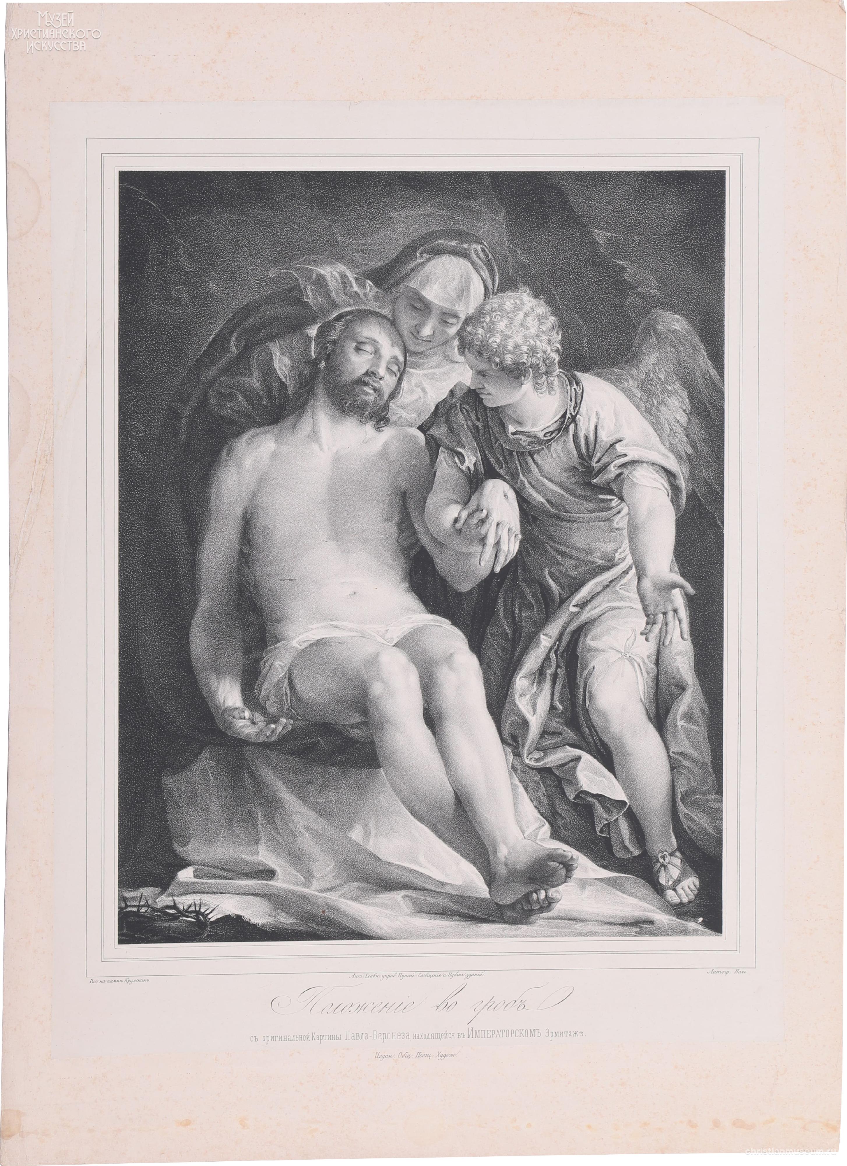 Надпись под рамкой - «Положенiе во гробъ // съ оригинальной Картины Павла Веронезе находящейся въ Императорском Эрмитажѣ.»