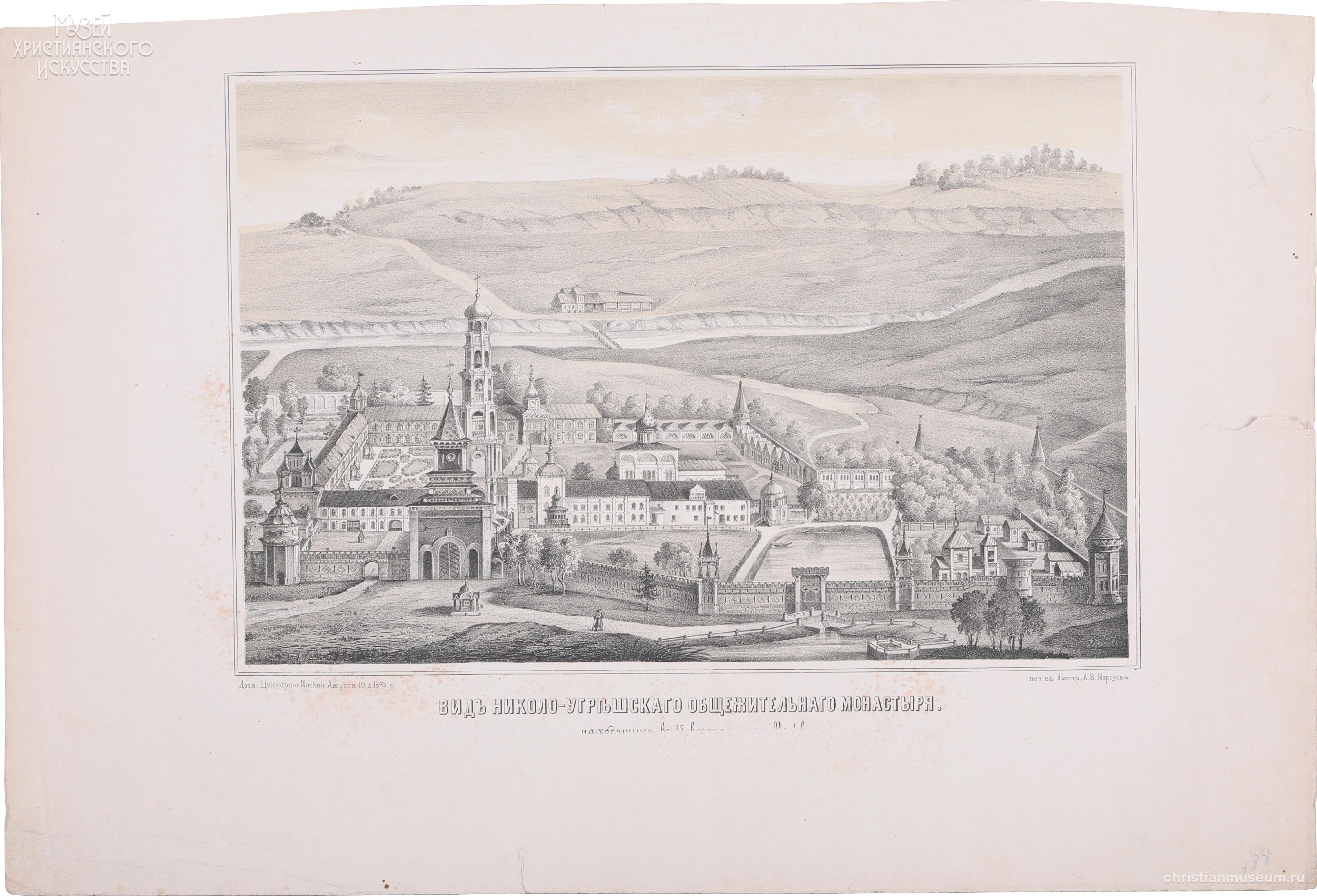 Надпись под изображением - «Видъ Николо-Угрешскаго общежительнаго монастыря.// находящегося въ 15 верстахъ отъ Москвы»