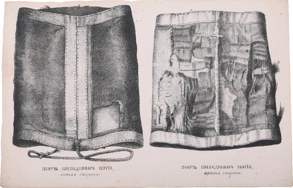 Надпись под изображением - «ПОРУЧЬ ПРЕПОДОБНАГО СЕРГÏА, // нижняя стороны. - ПОРУЧЬ ПРЕПОДОБНАГО СЕРГÏА, // верхняя сторона.»