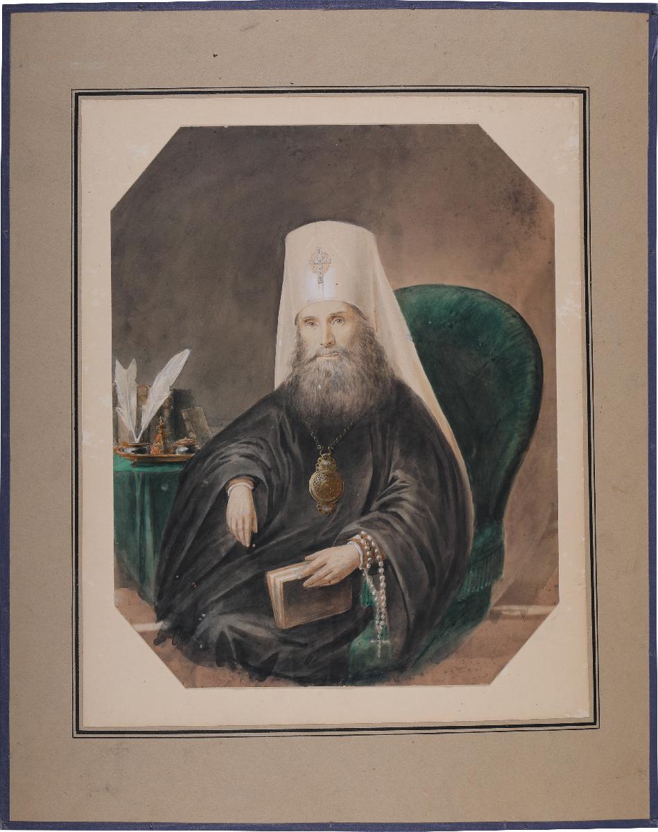Сравнение этого рисунка с подписными известными портретами Митрополита Филарета (Дроздова), созданными Николаем Даниловичем Шпревичем, позволяет отнести и этот портрет к работам московского художника, много почти ежегодно писавшего портреты московского архиерея. Владыка выглядит на представляемом портрете более молодым: седина еще только тронула его волосы на голове и бороде, пальцы руки показаны более наполненными телесными жизненными соками. Такая характеристика изображенного может предполагать его создание 1850-ми годами.