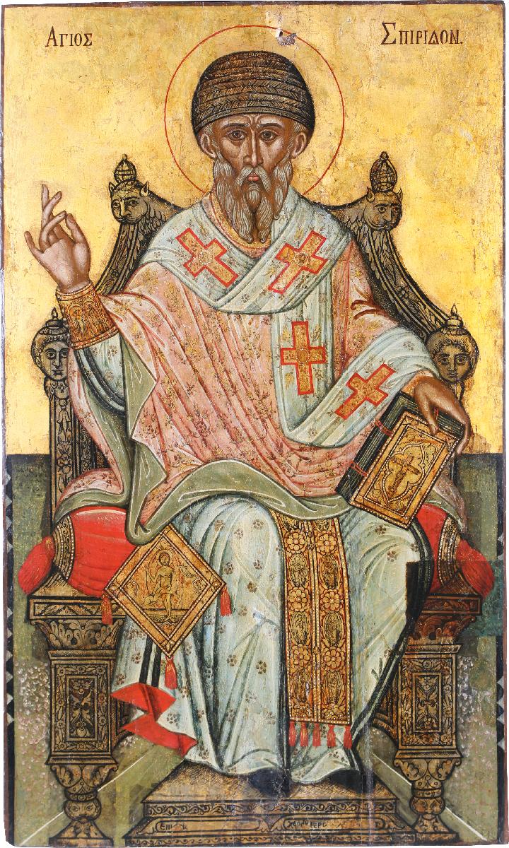Святитель Спиридон, епископ Тримифунтский (умер в 348 году) прославился своей благочестивой жизнью и неустанным служением в сане епископа города Тримифунта на Кипре в IV веке. День памяти 12 декабря. Святитель обладал даром прозорливости и чудотворения, после смерти у его мощей происходили различные исцеления. Он широко почитался во всей Византийской империи, особенно на Кипре, где родился и служил, и на Корфу, где с 1460 года находятся его мощи.