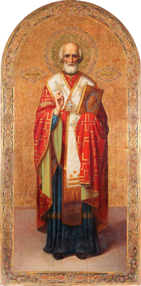 Такой иконографический тип изображения святителя Николая – древнейший, известный с VII века. Сложно сказать, был ли выбор древнейшего иконографического типа следствием осознанного обращения к ранним образцам. Для середины - второй половины XIX века характерен повышенный интерес к византийскому искусству.