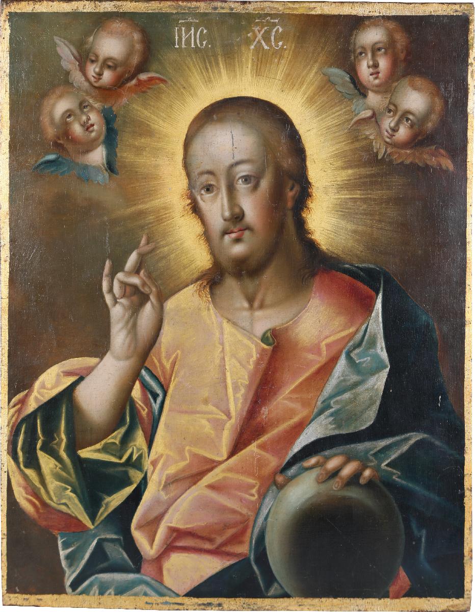Изображения Христа, держащего в руках державу, появились в русском искусстве на рубеже XVII - XVIII веков под воздействием гравюры. В западноевропейском искусстве подобный иконографический тип был широко распространен, начиная с XV столетия и назывался «Salvator mundi» - Спаситель мира. Сфера в руках Христа – держава – атрибут императорской власти, известный еще с римских времен.