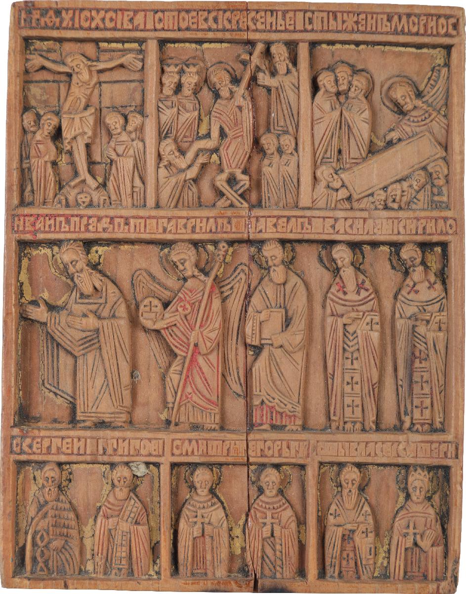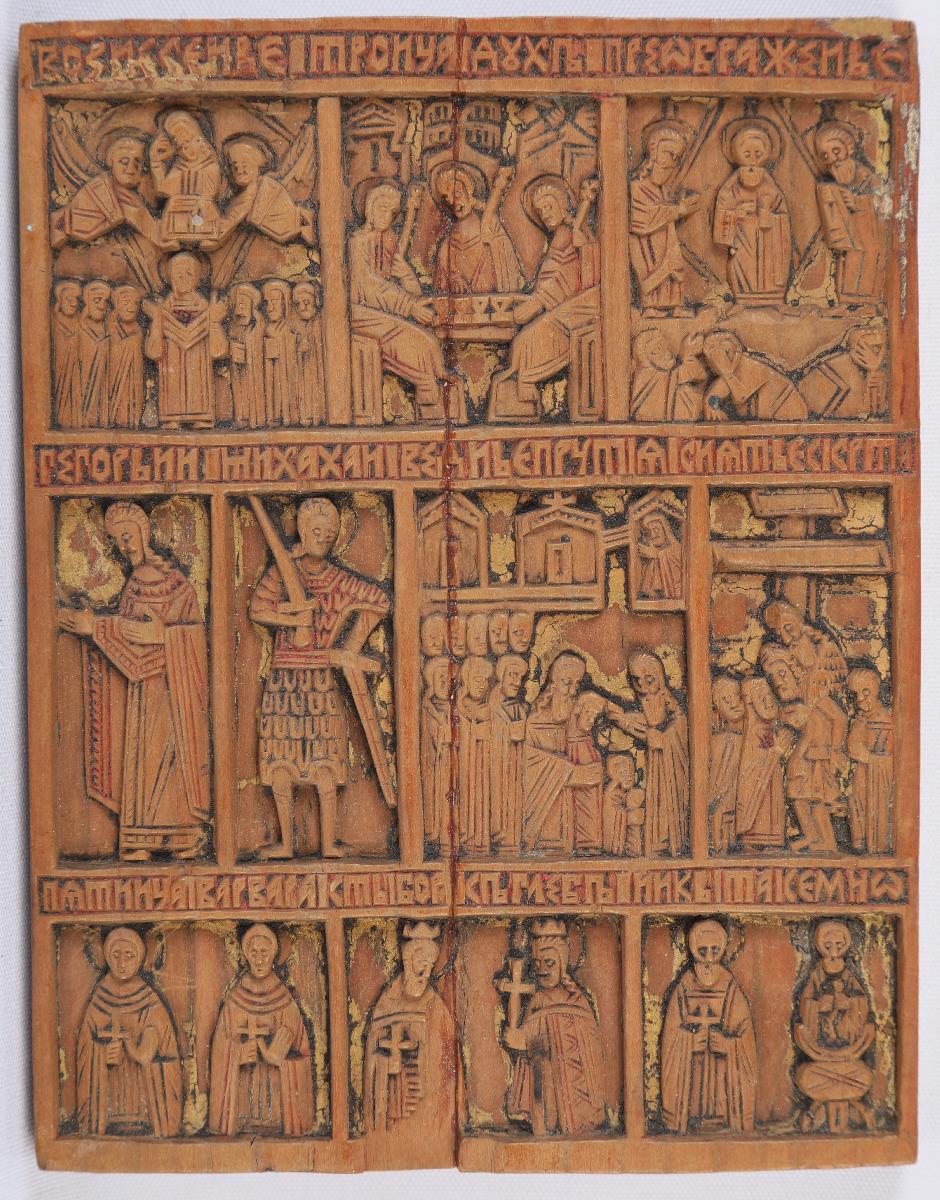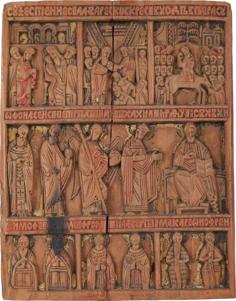 Складень является редким образцом мелкой пластики Новгорода XVI столетия.