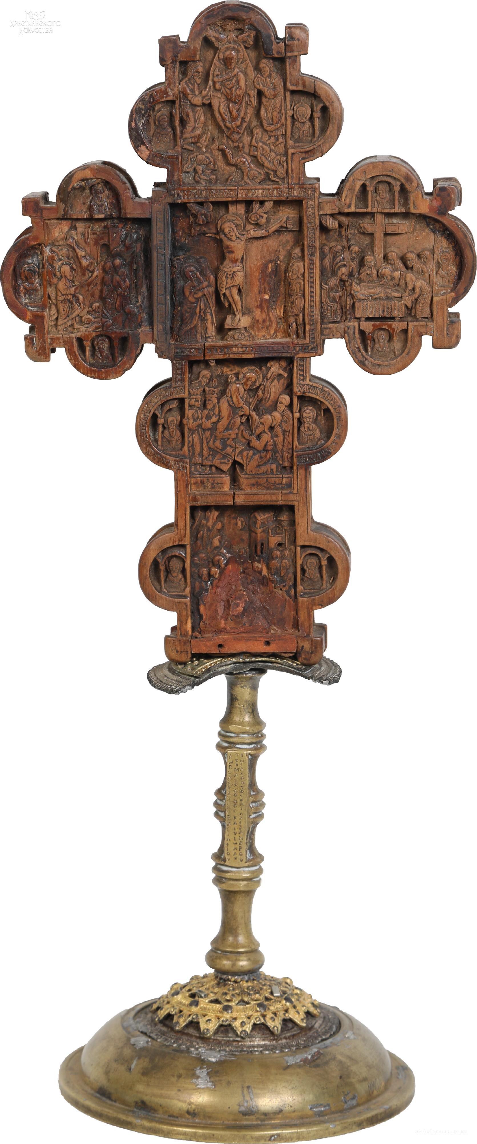 диаметр поддона 10,9 см; высота 32,4 см; крест ширина 14,0; толщина 1,9 смИконография: