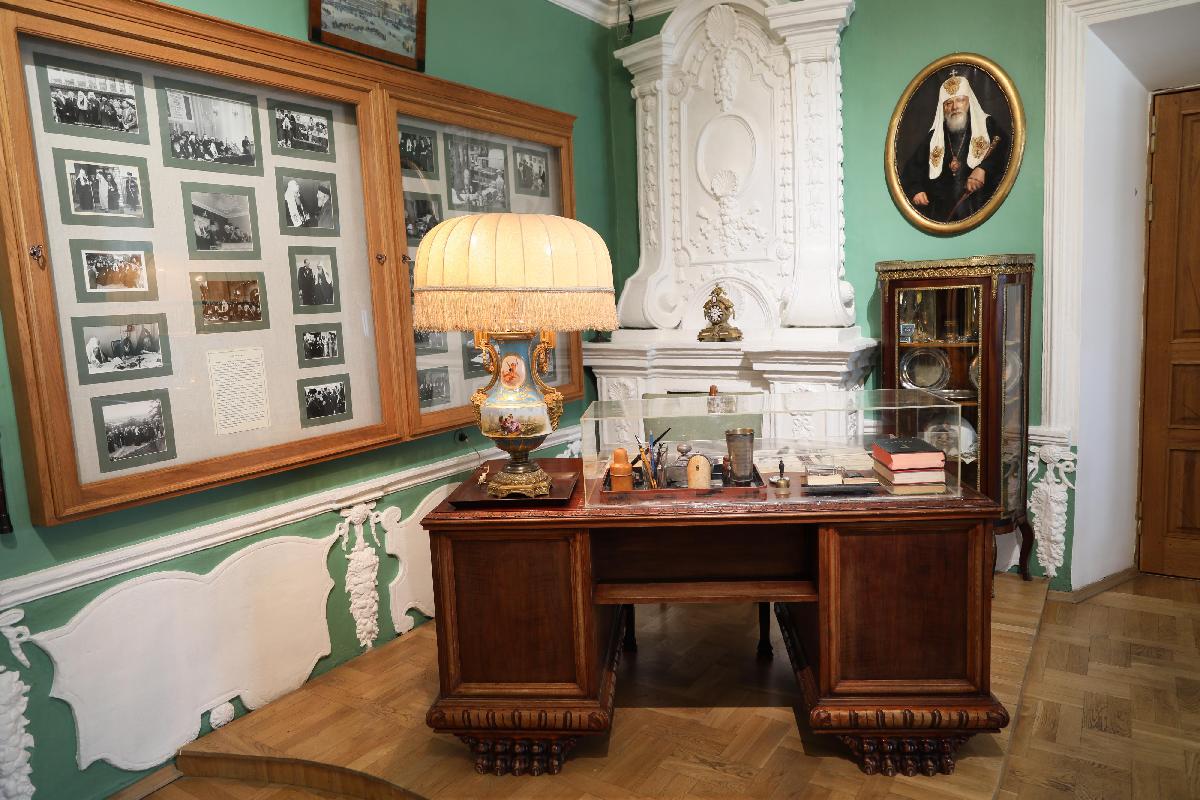 Устное предание связывает этот стол с обстановкой посольства Германии в Чистом переулке, здание которого после знаменательного разговора трех иерархов (митрополита Алексия (Симанского), митрополита Николая (Ярушевича), митрополита Сергия (Страгородского) со И.В. Сталиным было передано Московской Патриархии.