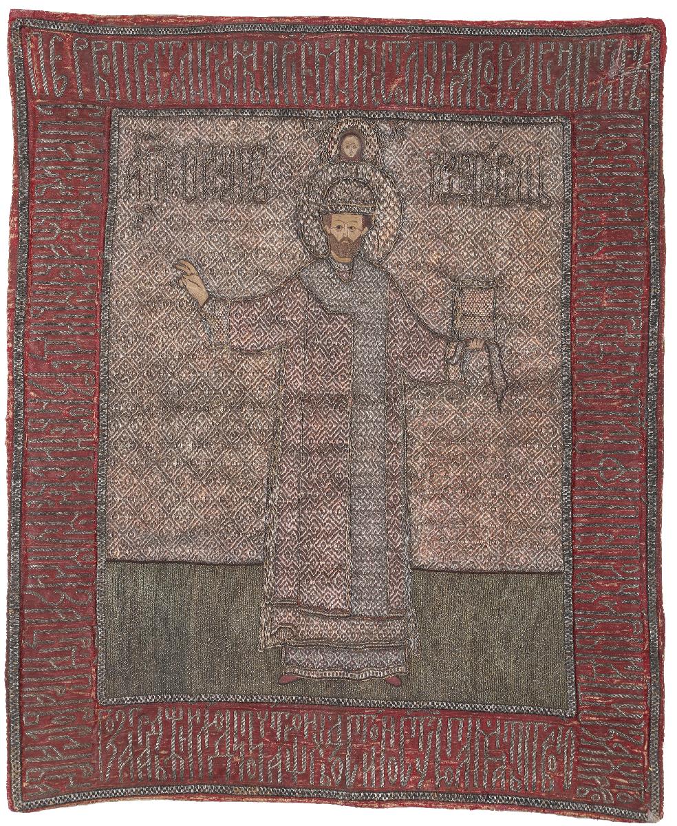 В пелене заметно влияние аналогичных строгановских небольших пелен середины XVII века с московскими митрополитами («Митрополит Алексей», ГИМ, Инв.№105353, «Митрополит Иона», ГМЗМК, Инв.№ТК-2506)