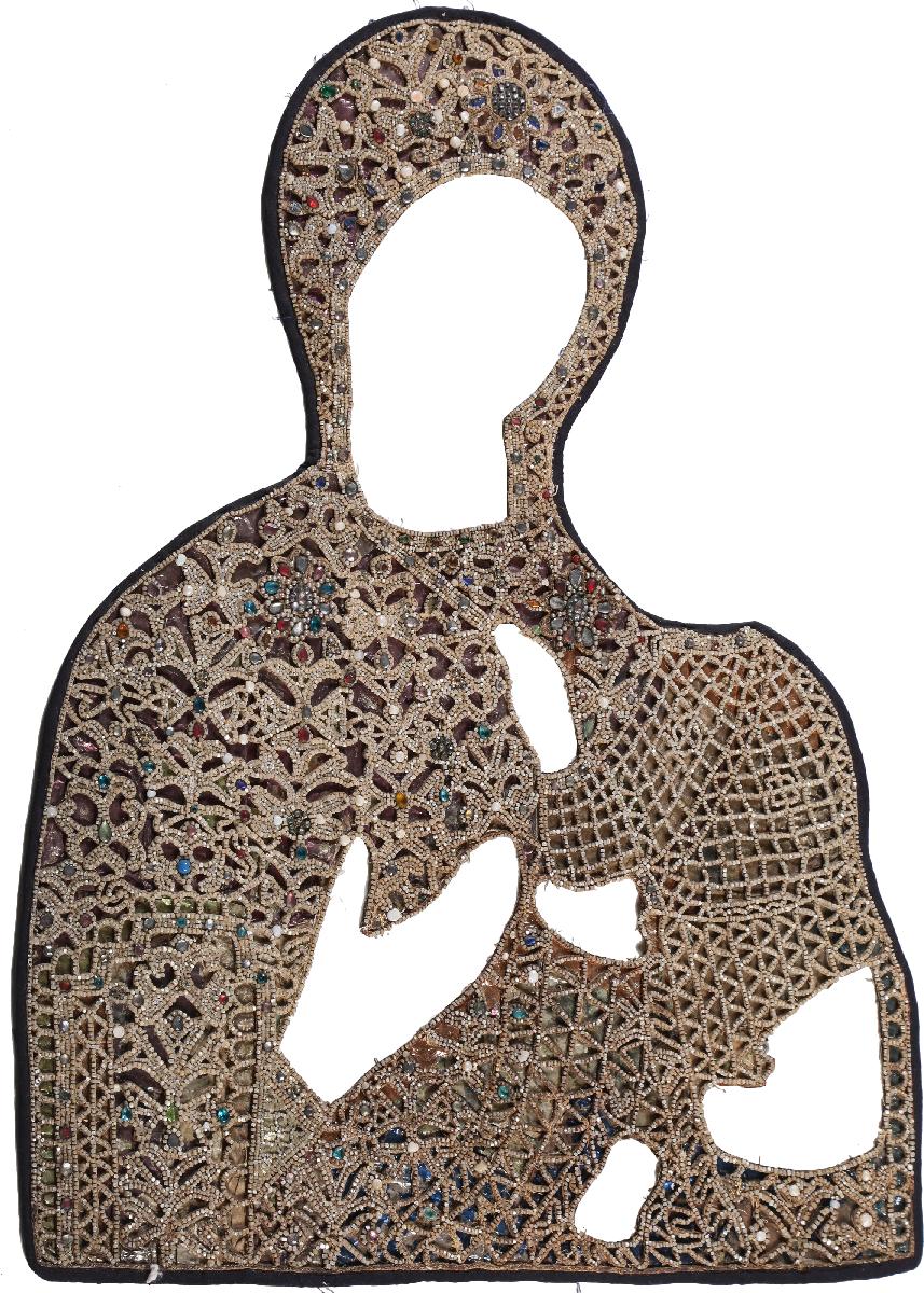 ткань, шелковые нити, перламутр, цветные стекла, речной жемчуг, низаниеРазмер: