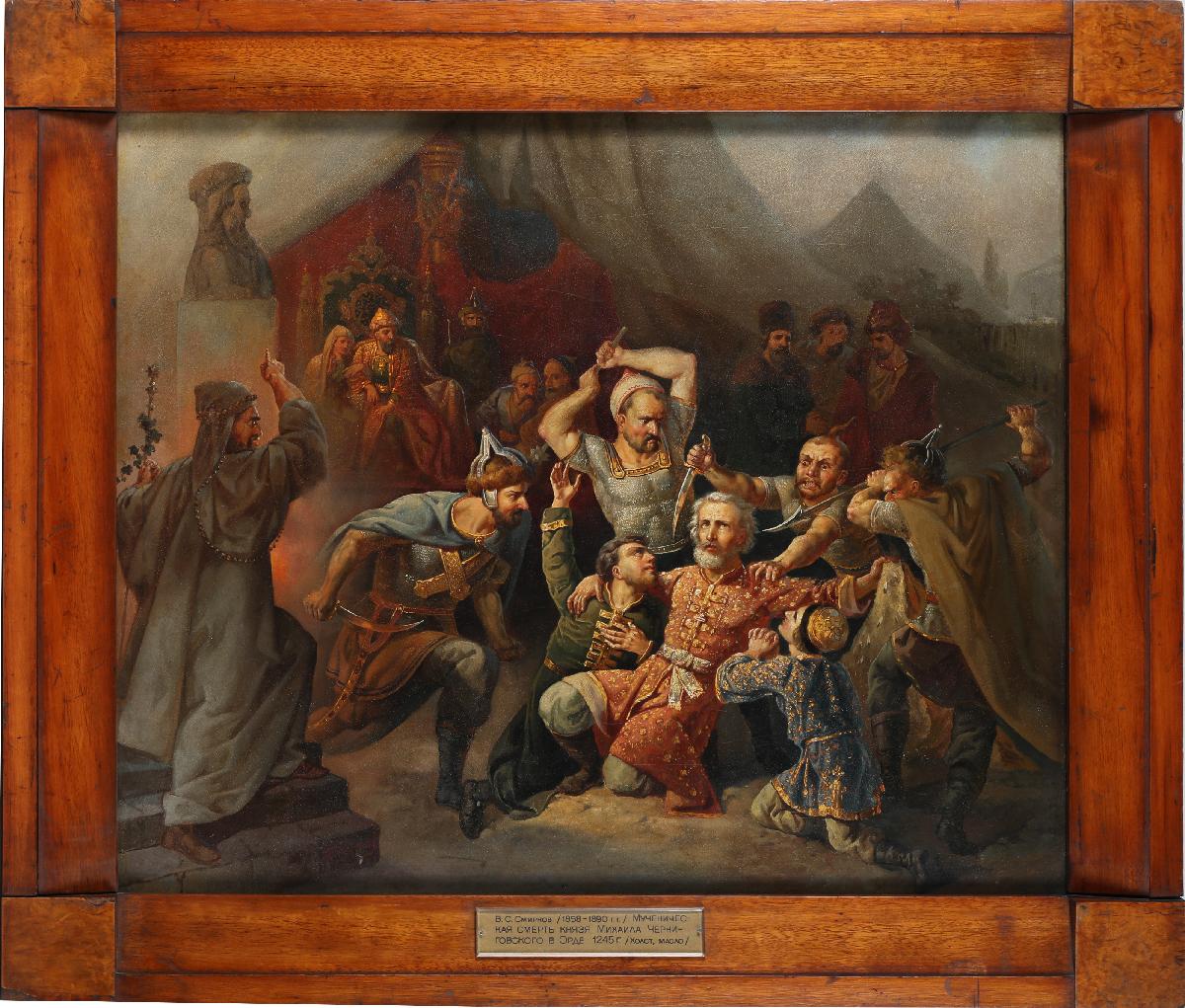 Исторической основой для картины стало «Сказание о убиении в Орде князя Михаила Черниговского и его боярина Феодора». Это рассказ о мученической смерти в ставке Батыя на Волге князя Михаила Всеволодовича, приехавшего просить ярлык на Черниговское княжение, 20 сентября 1245 года. Князь признал господство ордынского хана, но отказался выполнить языческие обряды, за что был убит.