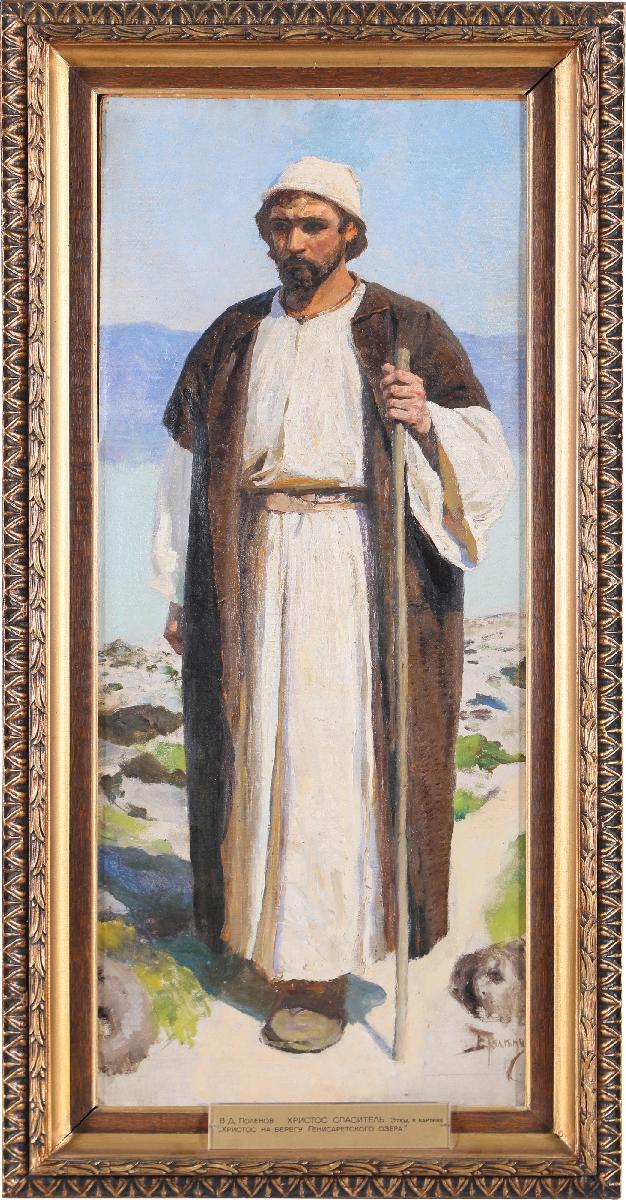 Тематически произведение входит в евангельский цикл «Из жизни Христа» (1890-1900-е годы), который насчитывал свыше 70 картин. Замысел серии, иллюстрирующей евангельские события, зародился в творчестве художника во время его первой поездки на Ближний Восток (1881-1882) и нашел отражение в крупных полотнах на эту тему. Возможно, что представленный экспонат из коллекции музея является эскизом фигуры Христа к картине «На Тивериадском (Генисаретском) озере». Несколько вариантов законченного произведения хранятся в Государственной Третьяковской галерее (1888), Курской государственной картинной галерее имени А. Дейнеки (1889), Национальном музее «Киевская картинная галерея» (1890), Национальном художественном музее республики Беларусь (1888-1890-е годы). Недатированный эскиз хранится в Днепропетровском художественном музее; графическое повторение, выполненное карандашом, – в Третьяковской галерее.