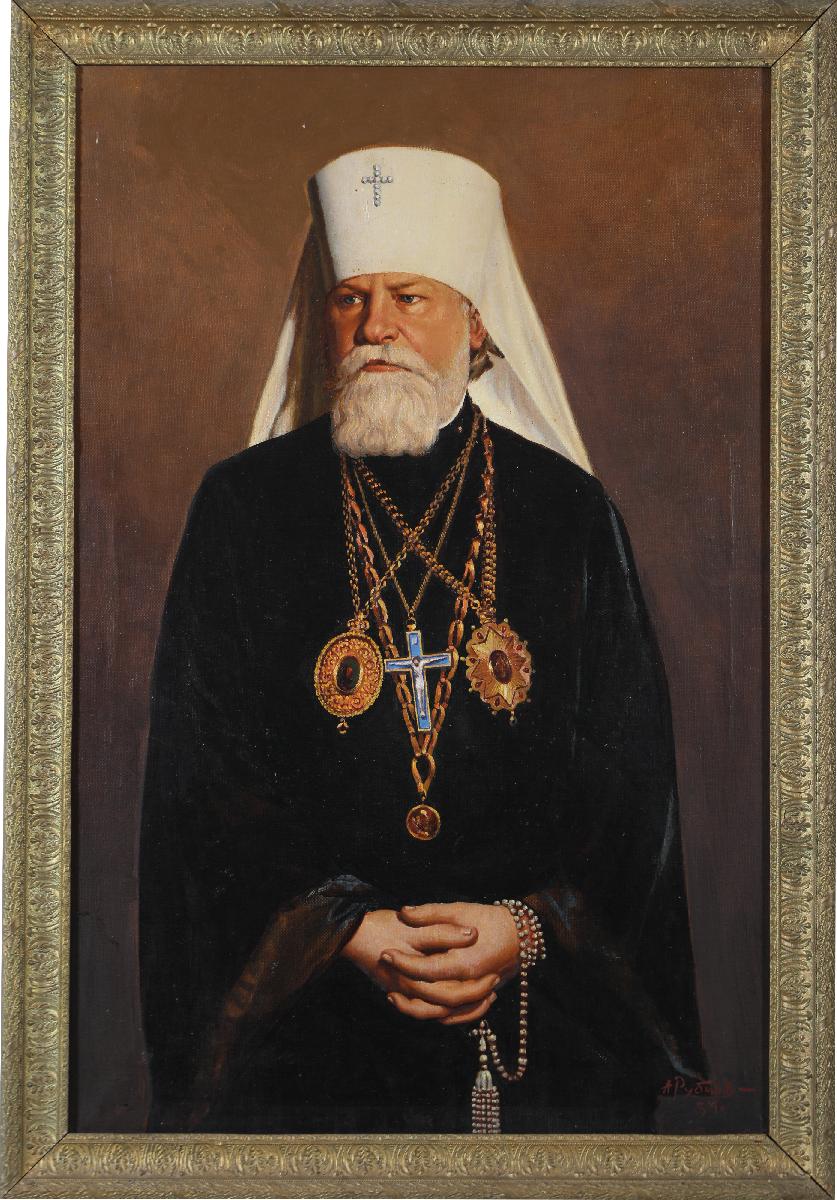 Митрополит Крутицкий и Коломенский Николай (Борис Дорофеевич Ярушевич, 1891-1961) – проповедник, богослов и педагог. В 1914 году принял монашеский постриг. Вскоре после своего рукоположения в священный сан выехал на фронт Первой мировой войны, сначала для служения духовником-проповедником в санитарном поезде, а позже священником лейб-гвардии Финляндского полка. В 1922 в Троицком соборе Александро-Невской лавры хиротонисан во епископа Петергофского, викария Петроградской епархии. С 15 июля 1941 года — митрополит Киевский и Галицкий, экзарх Украины. 4 сентября 1943 года участвовал во встрече трёх митрополитов (кроме него: Сергия (Страгородского) и Алексия (Симанского)) с Иосифом Сталиным, в результате которой правительство передало Патриархии здание в Чистом переулке, разрешило избрание Патриарха, восстановление церковных учебных заведений, освободило из лагерей ряд оставшихся в живых пастырей. С 1946-1960 (с 1947 года как митрополит Крутицкий и Коломенский) – первый председатель Отдела внешних церковных сношений Московского патриархата. Скончался 13 декабря 1961 года, похоронен в крипте Смоленской церкви Троице-Сергиевой Лавры.