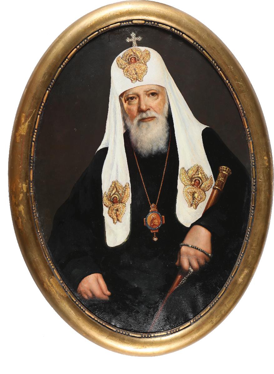 Патриарх Алексий I (Сергей Владимирович Симанский, 1877-1970) – богослов, педагог, кандидат юридических наук (1899), доктор богословия (1949). Происходил из дворянского рода, его отец вышел в отставку в звании камергера Императорского двора. После окончания юридического факультета Московского государственного университета, в 1900 году поступил в Московскую духовную академию. Через два года в Гефсиманском скиту Троице-Сергиевой Лавры пострижен в монашество ректором академии епископом Арсением (Стадницким). В 1913 году Высочайшим указом назначен епископом Тихвинским, 2-м викарием Новгородской епархии. После революции, в январе 1920 года вместе с митрополитом Арсением был арестован Новгородской ЧК, однако вскоре оба архиерея были освобождены. С 1927-1935 – член Временного патриаршего Священного синода, легализации которого удалось добиться заместителю Патриаршего местоблюстителя митрополиту Сергию (Страгородскому). В 1933 году, по уходе на покой митрополита Серафима (Чичагова), становится областным митрополитом Ленинградским (относились все епархии, находившиеся в границах Ленинградской области того времени). Во время блокады Ленинграда оставался в городе, совершал литургии и молебны, проповедовал, ободрял и утешал верующих. 4 сентября 1943 года вместе с митрополитами Сергием (Страгородским) и Николаем (Ярушевичем) присутствовал на встрече со Сталиным в Кремле. На Поместном соборе Русской православной Церкви 2 февраля 1945 года митрополит Алексий был избран Патриархом Московским и всея Руси. 10 апреля 1945 года состоялась ещё одна его встреча со Сталиным уже в статусе Патриарха. Занимал московский Патриарший престол более 25 лет – дольше всех в истории Русской церкви. Скончался 17 апреля 1970 года, в канун Лазаревой субботы, в патриаршей резиденции в Переделкине на 93-м году жизни, погребен в крипте Успенского собора Троице-Сергиевой Лавры.