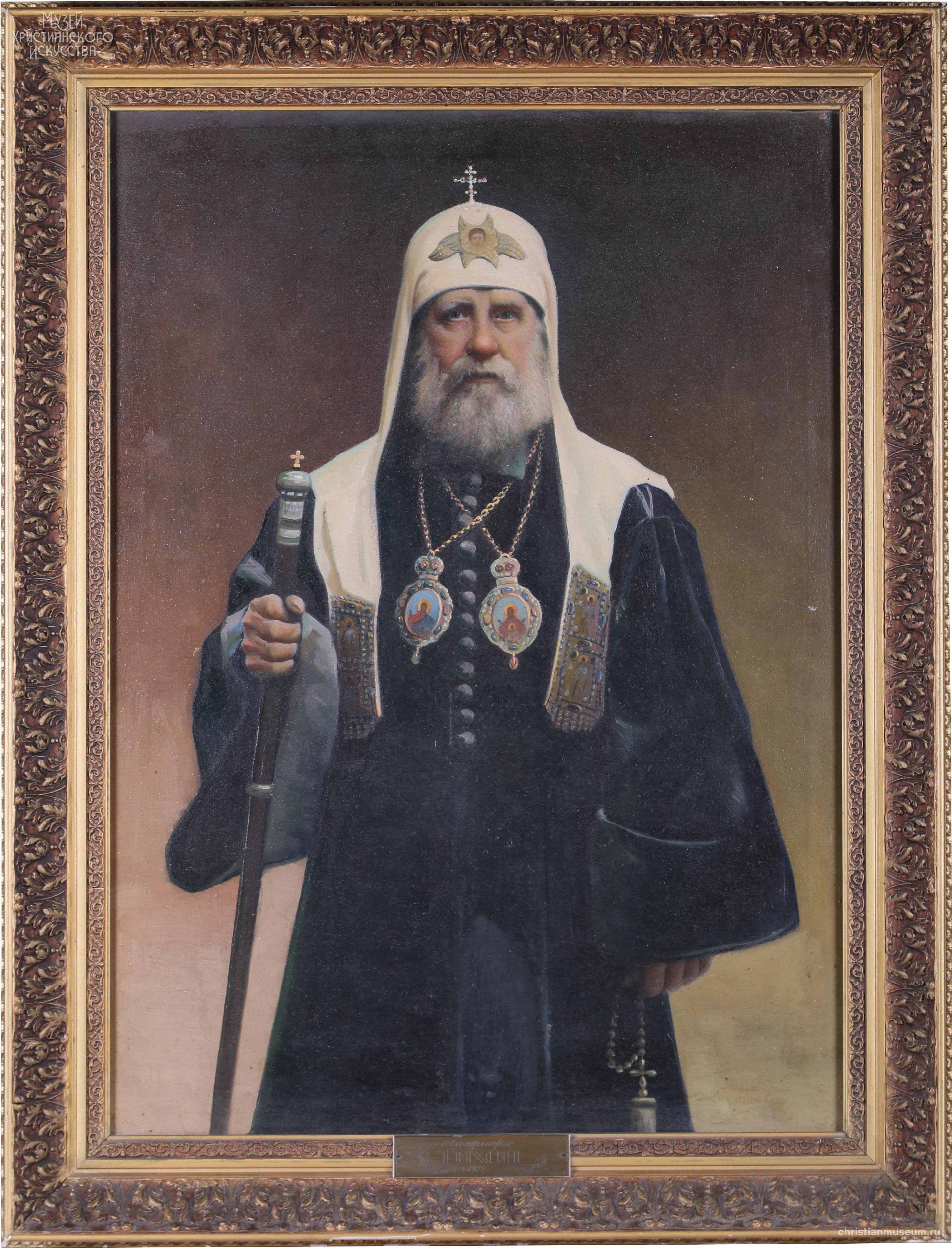 Патриарх Тихон (Василий Иванович Белавин, 1865-1925) – первый после восстановления патриаршества в России патриарх Московский и всея Руси. Родился в семье потомственного священника. Окончил Псковскую духовную семинарию и Санкт-Петербургскую духовную академию. За доброжелательное отношение к окружающим и степенный характер товарищи называли его «Архиереем» и «Патриархом». В возрасте двадцати шести лет принял монашеский постриг с именем Тихон в честь святителя Тихона Задонского. В 1897 году хиротонисан во епископа Люблинского, викария Холмско-Варшавской епархии. С 1900 года – епископ Алеутский и Северо-Американский. В 1907 году переведен на Ярославскую и Ростовскую кафедру. В 1913 году в ходе празднования 300-летия дома Романовых встречал императорскую семью при входе в Успенский собор Ярославля. На Всероссийском Поместном соборе 1917-1918 годов избран патриархом Московским, интронизация состоялась 21 ноября (4 декабря) 1917 года в Успенском соборе Московского кремля. 9 декабря 1924 года при попытке разбойного нападения на дом патриарха в Донском монастыре был убит Яков Полозов, бывший его келейником с 1902 года. Патриарх Тихон скончался в праздник Благовещения в 1925 году на 61-м году жизни. 1 ноября 1981 года на Архиерейском собором РПЦЗ канонизирован в лике исповедников со включением в Собор новомучеников и исповедников Российских; 9 октября 1989 года прославлен Архиерейским собором Русской православной церкви.