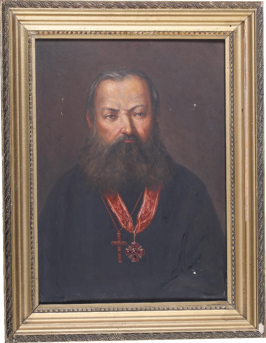 На поясном портрете Е. Е. Голубинский изображен с крестом и орденом святой Анны.