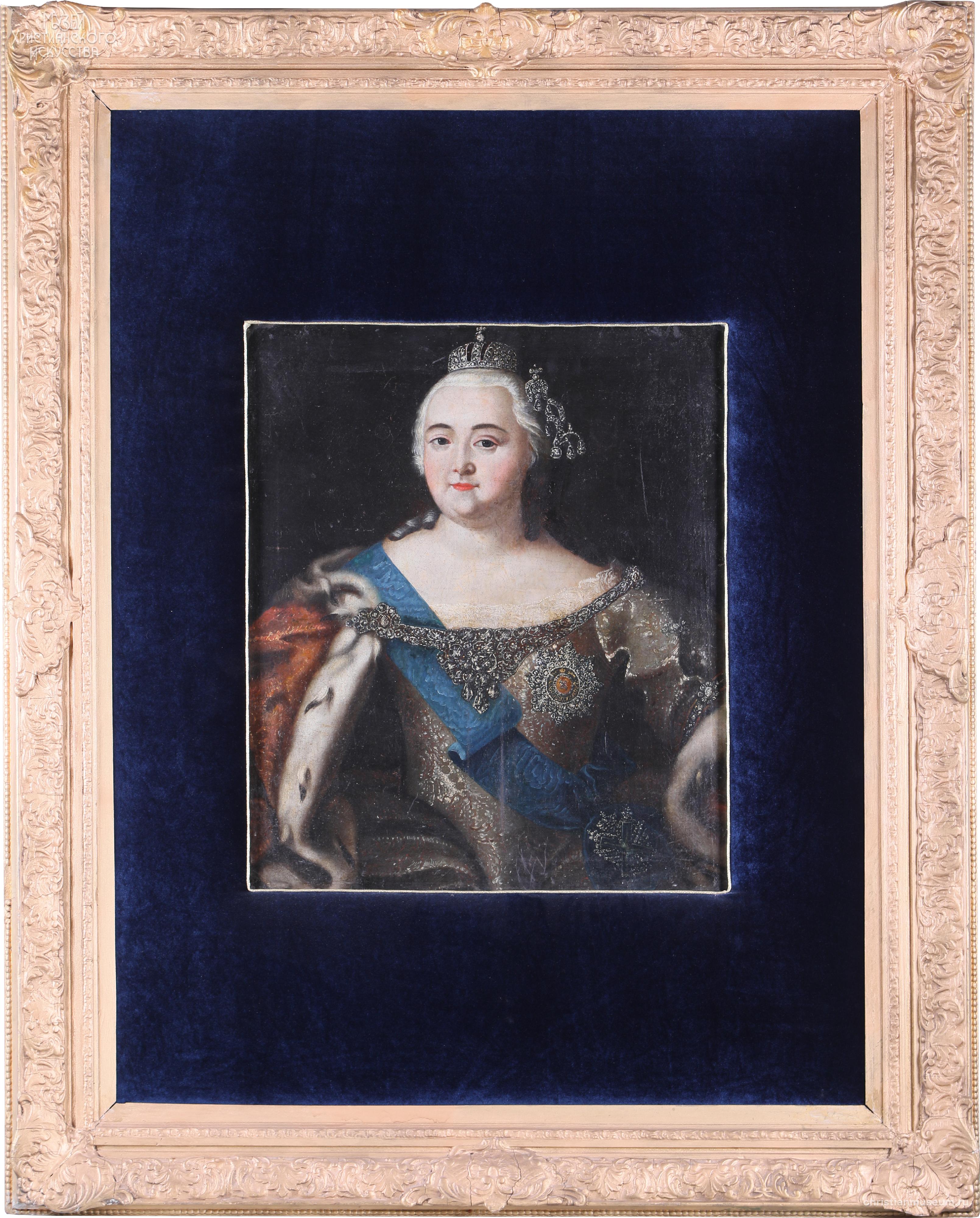 Поясной портрет императрицы Елизаветы Петровны, на котором она представлена в короне, императорской горностаевой мантии, с орденским крестом святого апостола Андрея Первозванного на муаровой ленте и звездой на груди. Портрет представляет собой реплику одного из парадных портретов. На представленном портрете из музейной коллекции не видны кисти рук императрицы и подушка с регалиями, занавес заменен нейтральным фоном. Исполнение живописи тщательное, но отражает признаки провинциальной художественной манеры.