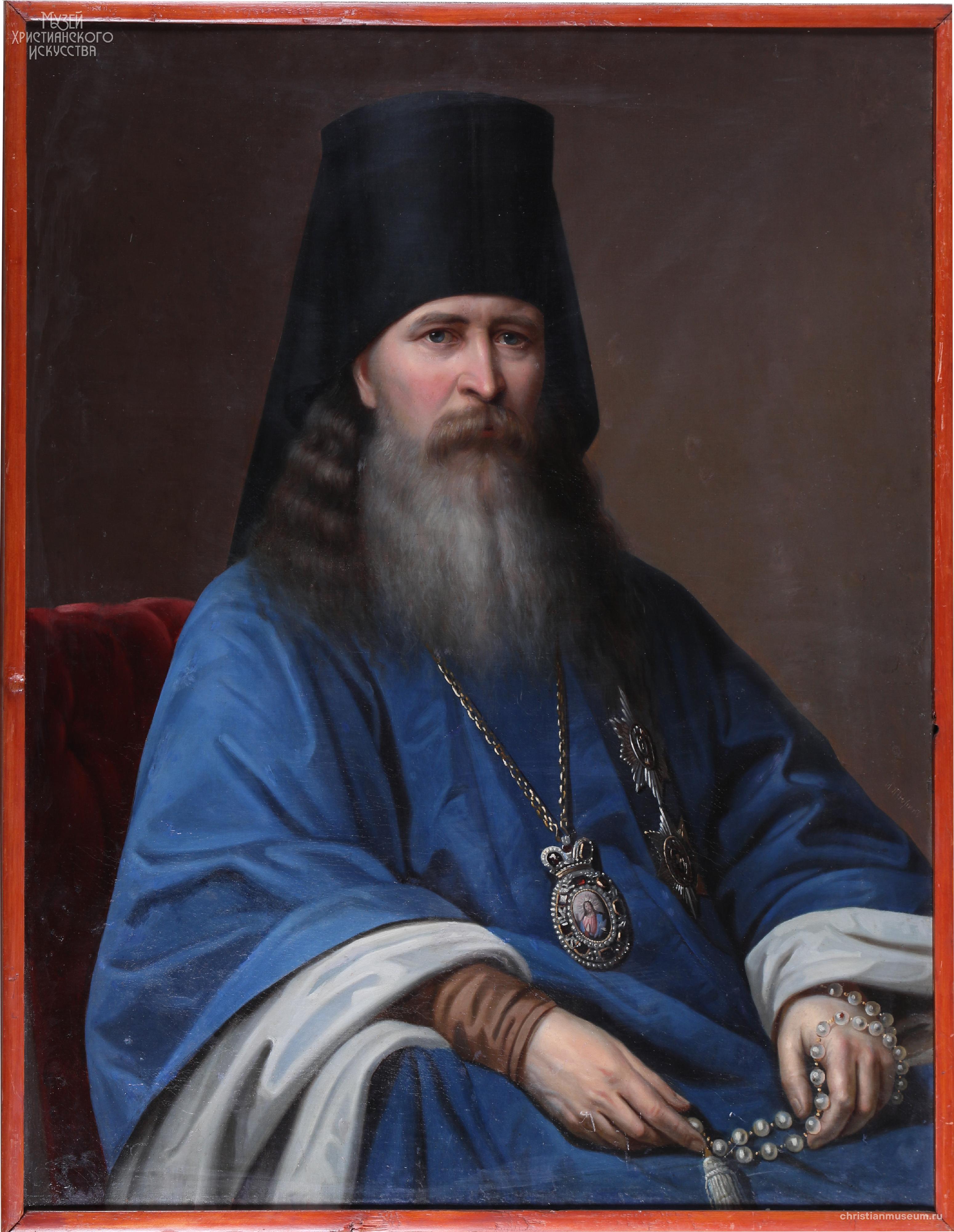 Справа на фоне подпись: «И. Тюринъ». Надпись на реставрационном подрамнике: «Епископ Феофан 1867 г. худ. И. Тюрин»Иконография: