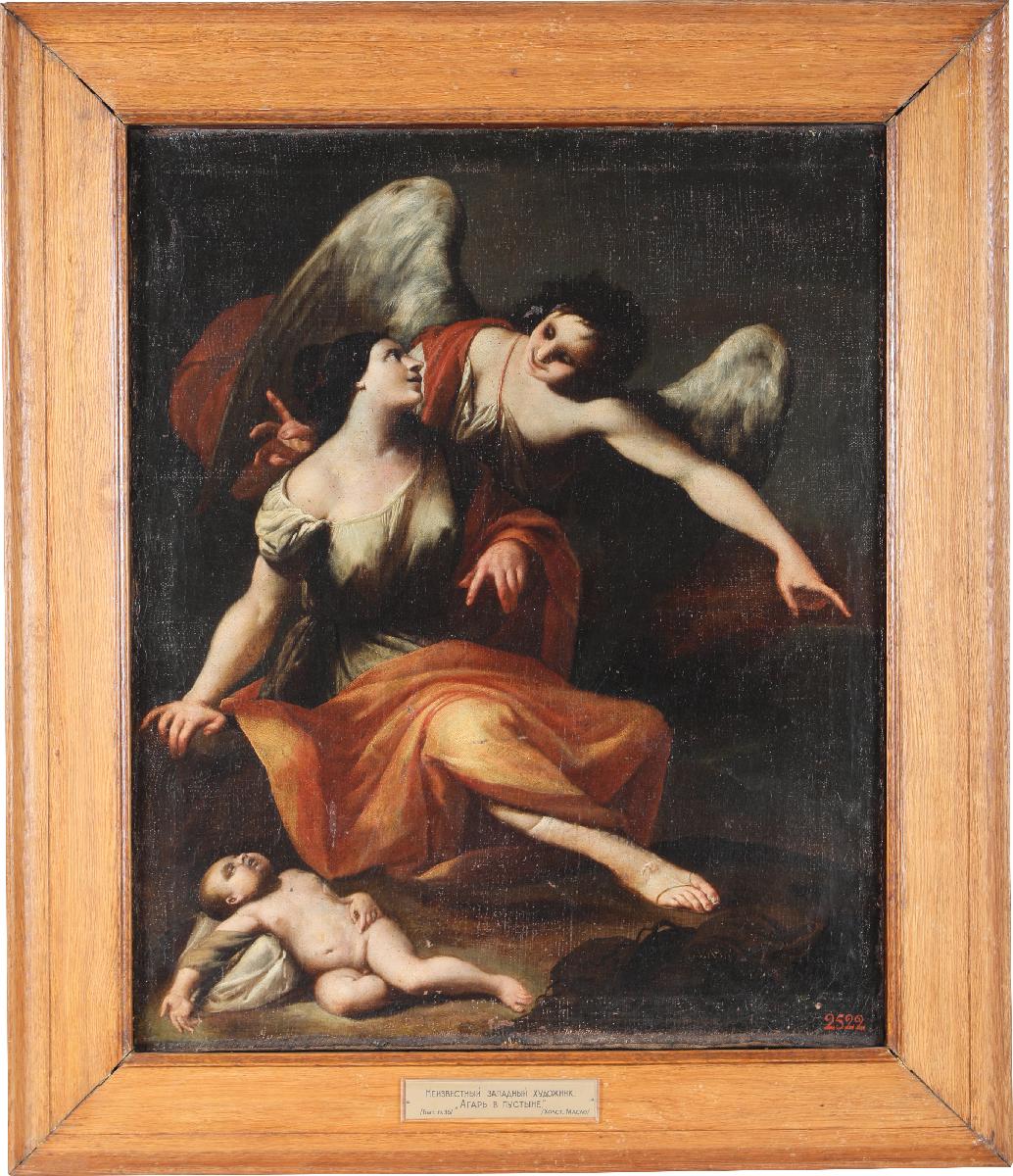 Сюжетом для картины стал ветхозаветный эпизод из книги Бытия (Быт. 21: 10-21). Агарь, вышедши из дома Авраама, заблудилась в пустыне. Когда у нее не осталось воды, она и ее сын Измаил от жажды пришли в изнеможение. В отчаянии, Агарь положила ребенка под деревом, отошла от него на один выстрел из лука, говоря: «Я не хочу видеть смерти моего сына». В это время ей явился Ангел, он указал на источник воды и прорек, что Измаил станет родоначальником великого народа.