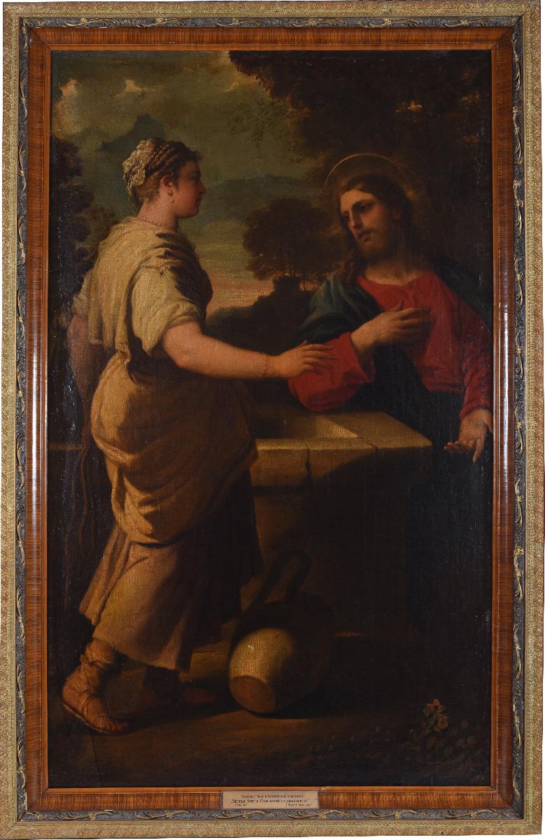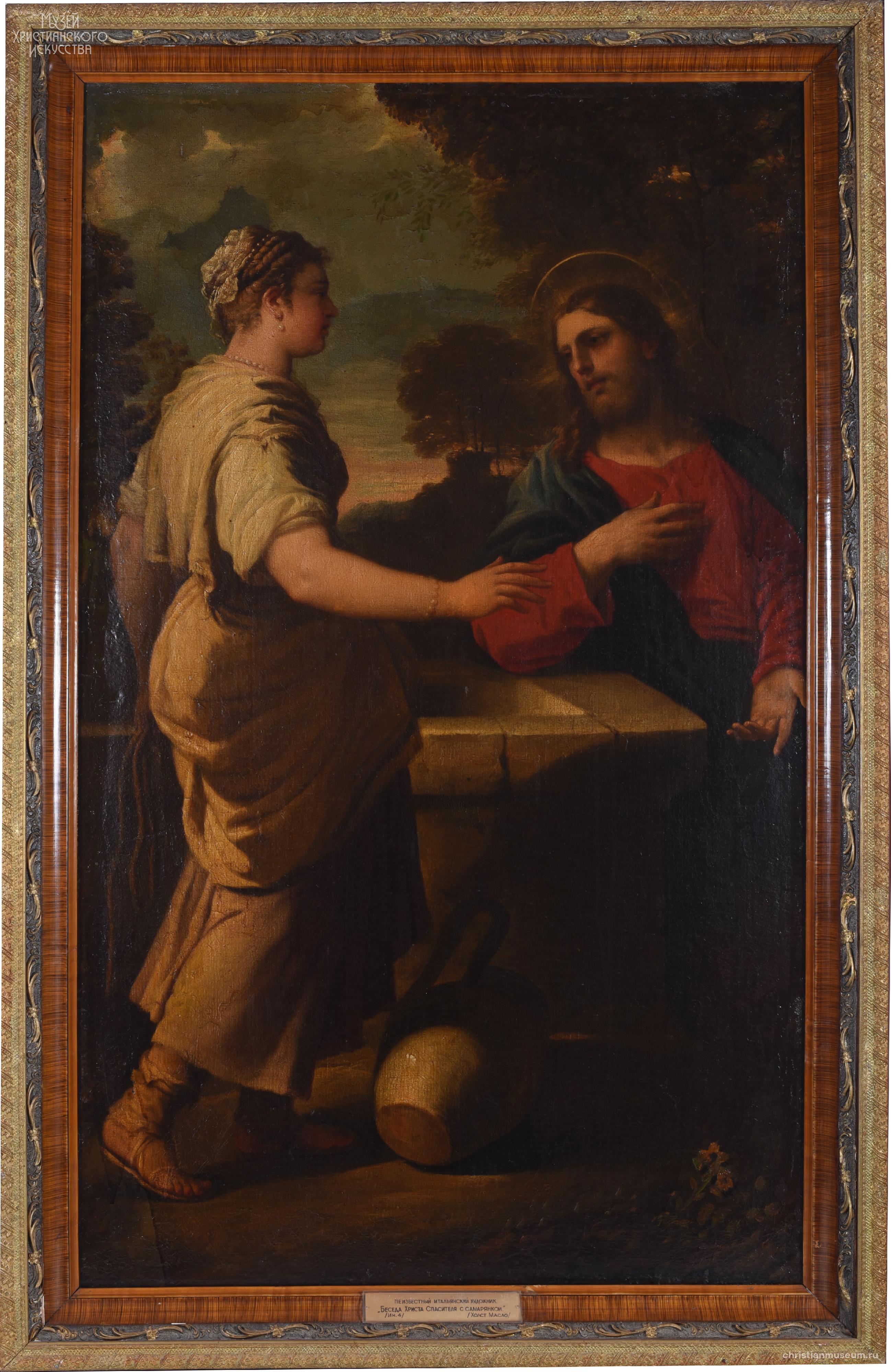 Сюжетом для картины стал эпизод, описанный евангелистом Иоанном (Ин. 4: 5-28), в котором Господь Иисус Христос долго беседовал с «самарянской женой» возле колодца Иакова, когда возвращался из Иудеи в Галилею. Справа – фигура Христа изображена в традиционном для иконографии Спасителя красном хитоне и синем гиматии, над головой тонкий нимб. Христос сидит у каменного колодца квадратной формы; правая рука опирается на его край и приложена к груди; левая, с раскрытой ладонью, опущена на колено. Слева – фигура женщины в одеждах охристо-оливкового цвета, волосы заплетены в косы и подколоты накладной кружевной заколкой. Левой ногой она делает шаг в сторону колодца, обнаженная выше локтя правая рука приподнята. По центру на земле лежит большой кувшин для воды. На заднем плане – условный пейзаж.