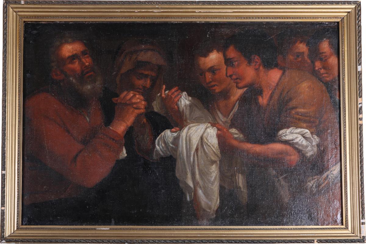 Многофигурная композиция вытянута по горизонтали и иллюстрирует эпизод ветхозаветной истории (Быт. 37), когда братья продали Иосифа в египетское рабство, а своему отцу Иакову принесли его одежду, смоченную в крови козленка. Они сказали, что Иосифа растерзал дикий зверь. В левой части картины – братья Иосифа: двое из них держат в руках белую ткань с пятнами крови; лица ещё двоих видны в вернем правом углу картины. В левой части – фигура Иакова, который в отчаянии заламывает в мольбе руки, взгляд его обращен вверх. По центру в глубине видно скорбное женское лицо. Крупные фигуры персонажей стеснены в пространстве полотна. Однотонный темный фон занимает лишь небольшую верхнюю часть картины.