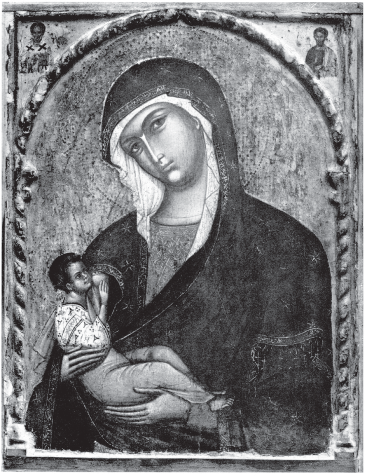 От середины – второй половины XIV века до нас дошло несколько десятков образов, где мы видим смешение восточных (византийских) и западных (готических) черт. Наиболее близкую аналогию представляет образ Богоматери Млекопитательницы третьей четверти XIV века, проданный в 1967 году на аукционе Fischer в Швейцарии, а затем повторно выставленный на аукционе Christie's. По оценке профессора Микеле Баччи иконы так похожи, что могут быть произведением одной и той же руки.
