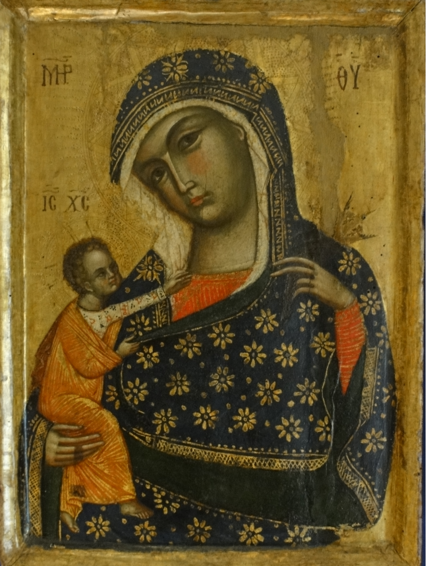 На них Богоматерь чаще всего представлена в иконографии «Умиление» или «Млекопитательница». Икона из собрания МХИ ЦАК при наличии венецианских черт выделяется своим подчеркнуто византийским характером и очень высоким художественным качеством.